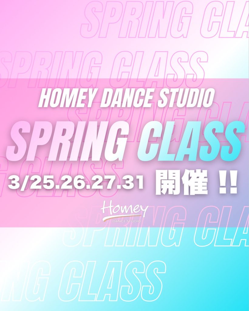 ✨3/25(水)・26(木)・27(金)・31(火)にSPRING CLASS 開催決定✨ 新学期がスタートする前に、、🌸 HOMEYでダンスを始めてみたい方へおすすめの初級クラスから普段は受けられない大人気の先生たちによるコラボクラスまで! 春休みもたくさん踊ってスキルアップしましょう🔥 まもなくスケジュールを発表!予定を空けてお待ちください!