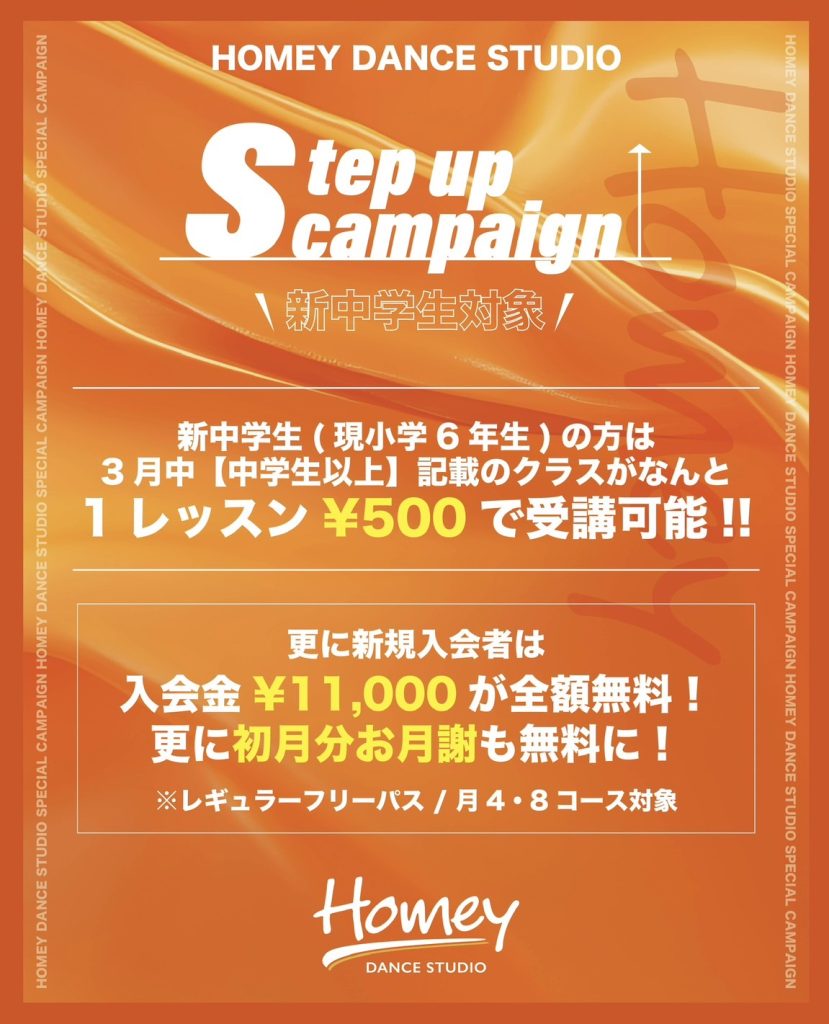 \キャンペーン1️⃣/ なんと‼︎ 新中学一年生は3月中、【中学生以上】と記載されているクラスが 何度でも《1レッスン ¥500》で受講可能✨ 会員様・非会員様 どなたでもご利用可能です! (名西校限定となります。) 📌 予約不要! 現金 ¥500 をお持ちの上、直接スタジオへお越しください💁♂️ ※お釣りのないようご準備ください ※レッスン開始 10分前迄を目安 にお越しください ⸻ \キャンペーン2️⃣/ 新中学一年生は3月中にお手続きで 入会金 ¥11,000 → 無料 ¥0‼︎ さらに…‼︎ 4月コーススタートの方は 入会金に加えて 4月分お月謝も無料 ¥0 😱✨ ※コ…