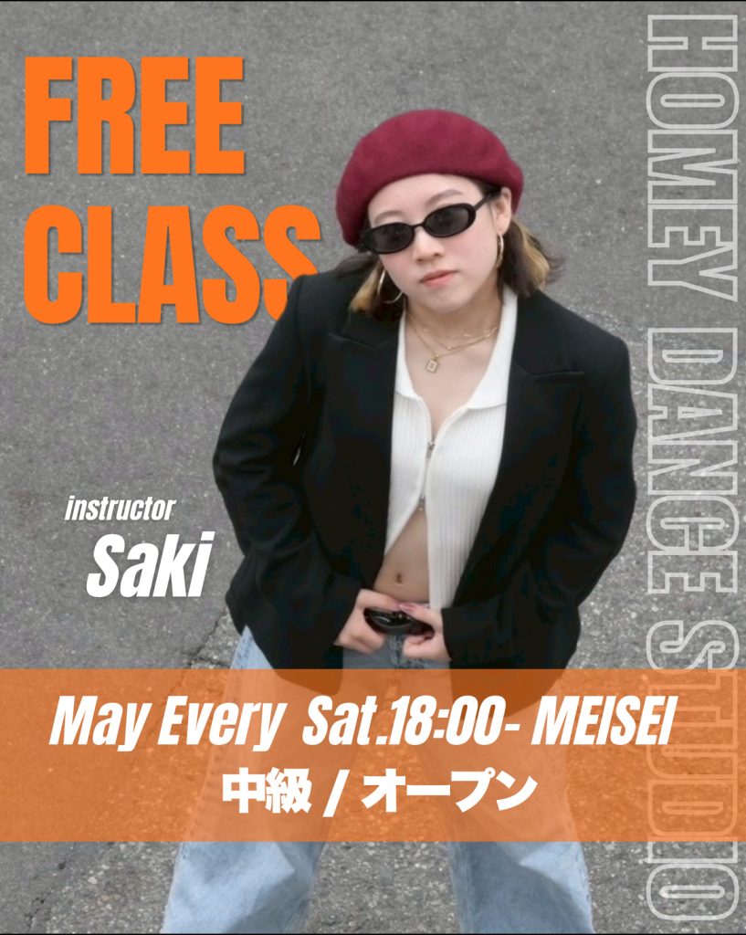 ✨Sakiマンスリークラス開講✨ 5月はFree Classとして開講! 5月中! 誰でも¥0で! 何度でも体験可能🔥 Saki先生の魅力たっぷりなダンスを ぜひこの機会に体感しましょう✨ 【開講日】 土曜 18:00-19:00 名西校 HIPHOP / 中級オープン ご予約開始 4/13 17:00〜! 〈ご予約方法〉 ①プロフィールリンクから予約サイトへアクセス ②該当日時のクラスを選択 ③「FREE CLASSチケット(¥0)」をご購入 ④ご予約完了!
