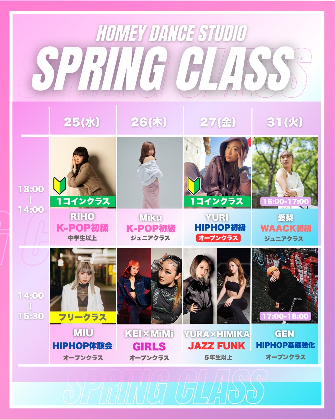 🌸スプリングクラス🌸 ※一部スケジュール変更あり