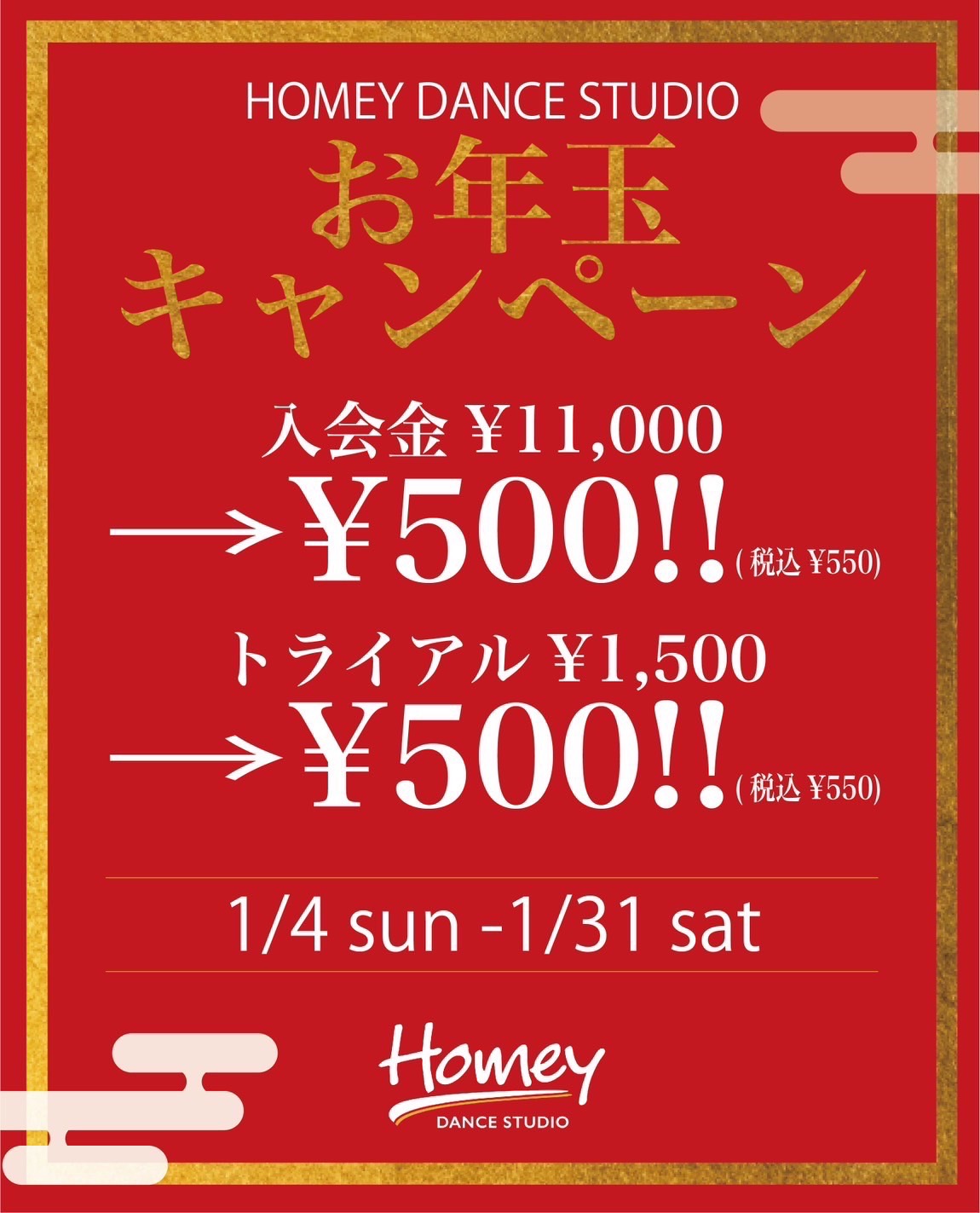 ⚫︎入会金¥500キャンペーンは1/31(土)までにご入会のお手続きが完了された方(1月または2月スタートまで)が対象