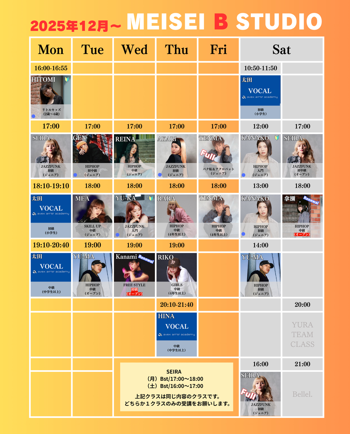 ピンクの⭐️が付いているクラス・キャンセル待ちクラス以外のクラスが体験可能となっております!