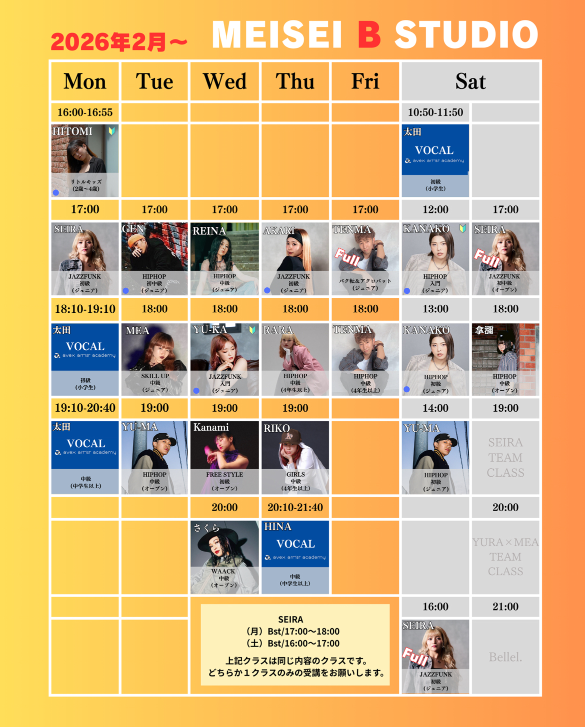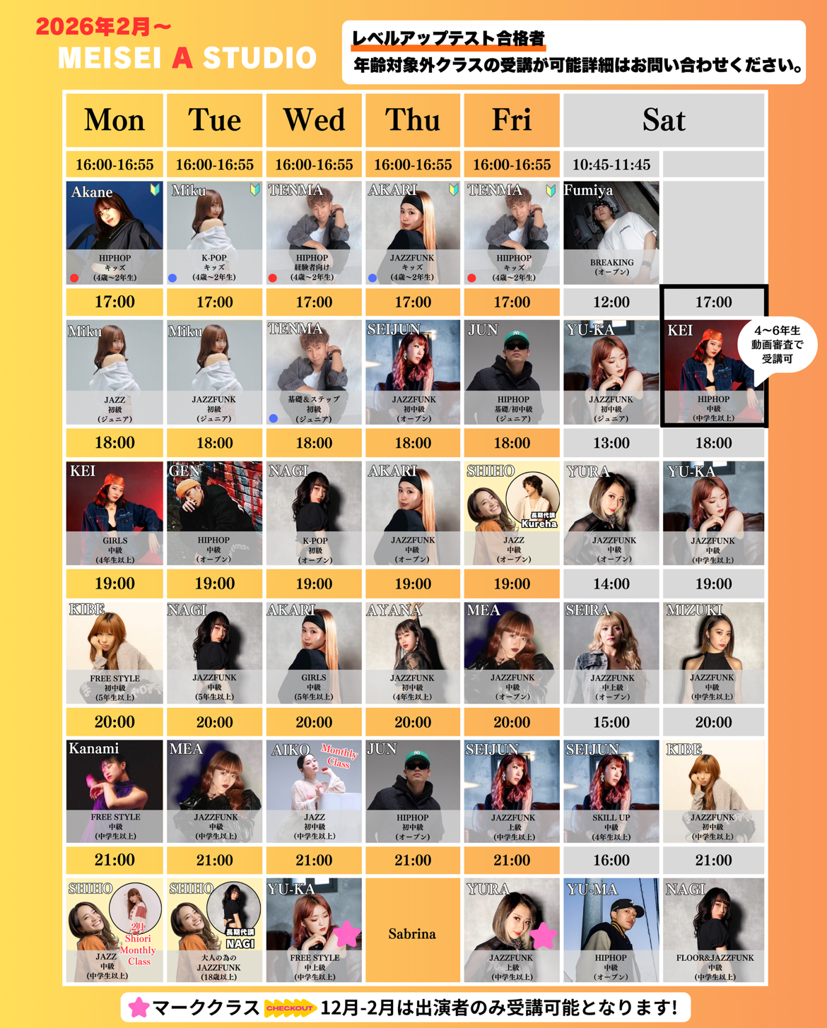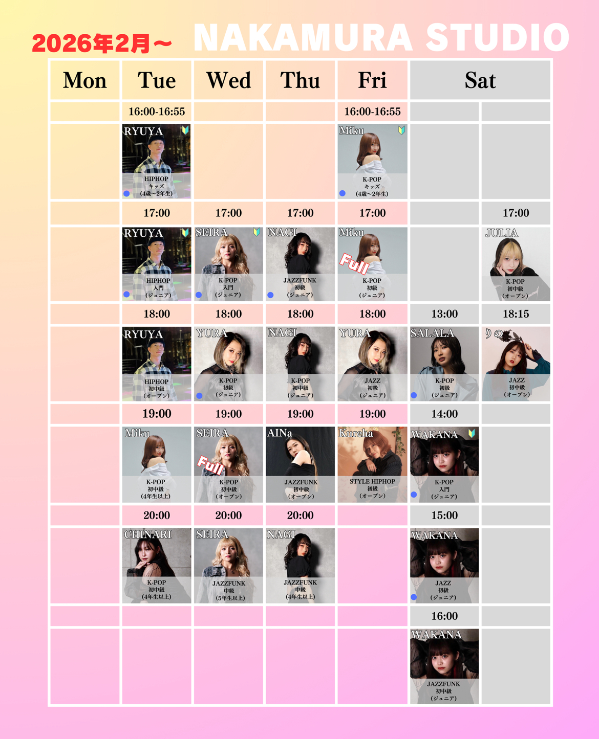ピンクの⭐️が付いているクラス・キャンセル待ちクラス以外のクラスが体験可能となっております!