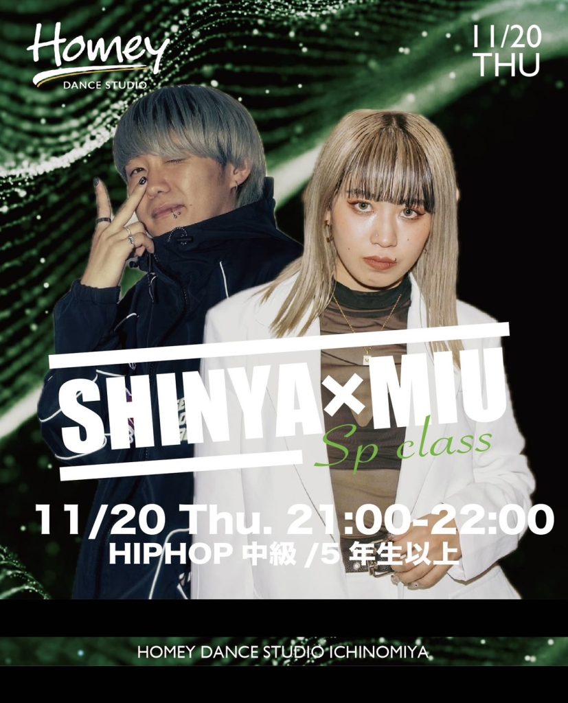 SHINYA×MIUコラボレッスン開催🔥 ___________________ 〈一宮校〉 11/20(木) 21:00-22:00 インストラクター: SHINYA× MIU HIPHOP中級 🔴この日のみ小学5年生から受講可能です! ※振替受講不可 【受講方法】 🔸レギュラーコース ・コース予約 ・チケット(繰り越しチケット可) 🔸キッズコース シングルチケット 🔸チケット会員・非会員 シングルor ビジターチケット ✴︎現在通常クラスをご予約済みの方でコラボクラスを受講されない場合はお手数ですがご自身でキャンセル手続きをお願いいたします。 ___________________ 【予約…