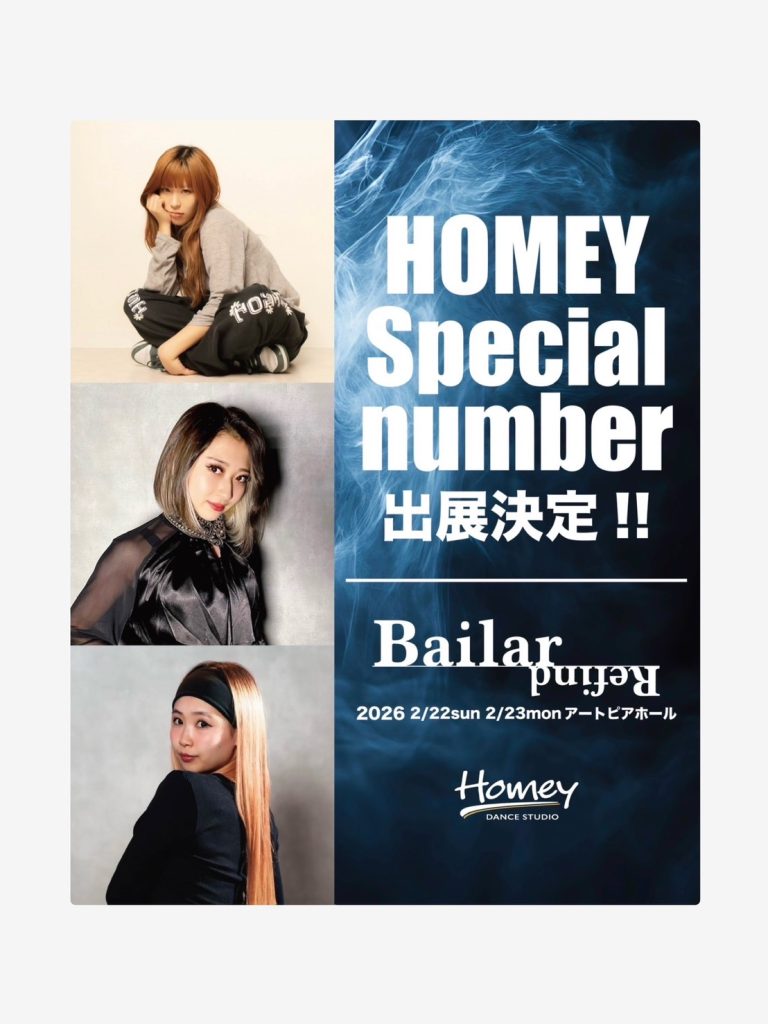豪華舞台で踊るスペシャルステージ✨ 2面LEDの舞台!Bailar Refind! HOMEY DANCE STUDIOからスペシャルナンバーの出展が決定! 【本番】 2026年2月22日-23日 at 青少年文化センター アートピアホール ✅中学生以上限定キャンペーン開催中🔥🔥 入会金+初月無料!!! キャンペーンを使えばエントリー費¥11,000が実質無料! お得にエントリーできるチャンスです🌟 リハーサル日程などの詳細は決まり次第お知らせいたします! もうしばらくお待ちください。